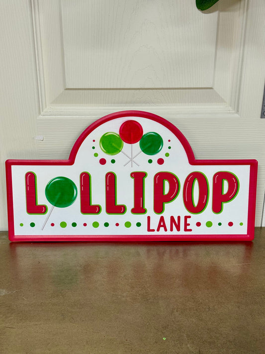 15 Inch Red Emerald Lime Lollipop Lane Street Metal Sign