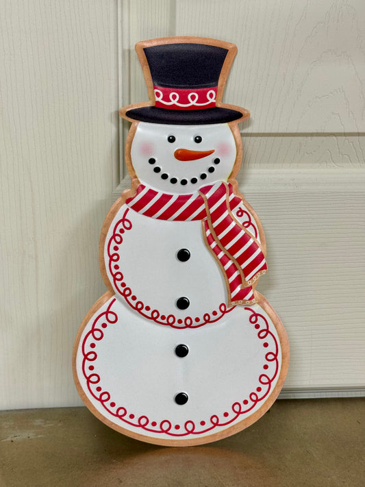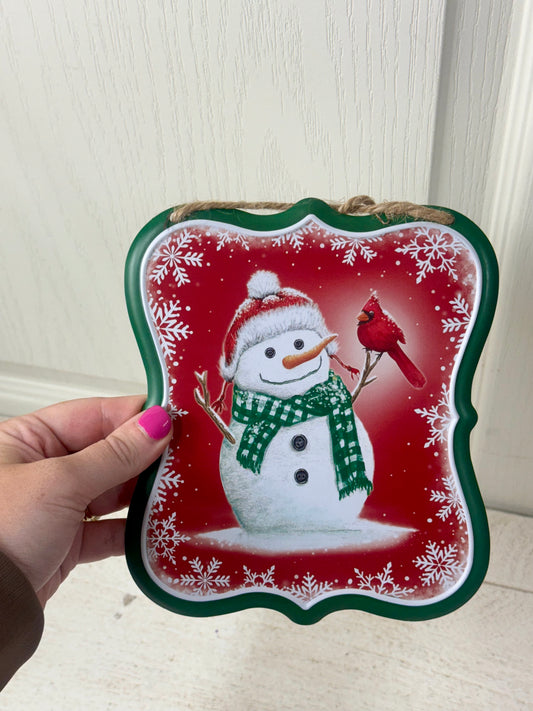 12 Inch Red Metal Snowman Cookie Wreath Sign