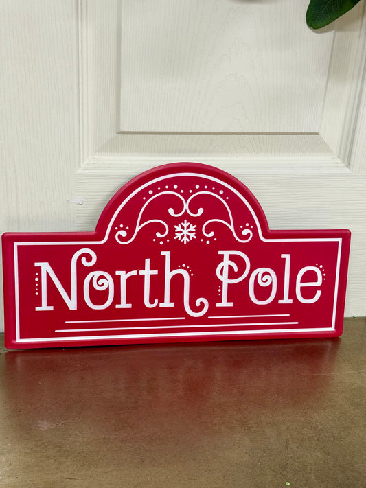 15 Inch Red And White North Pole Street Metal Sign