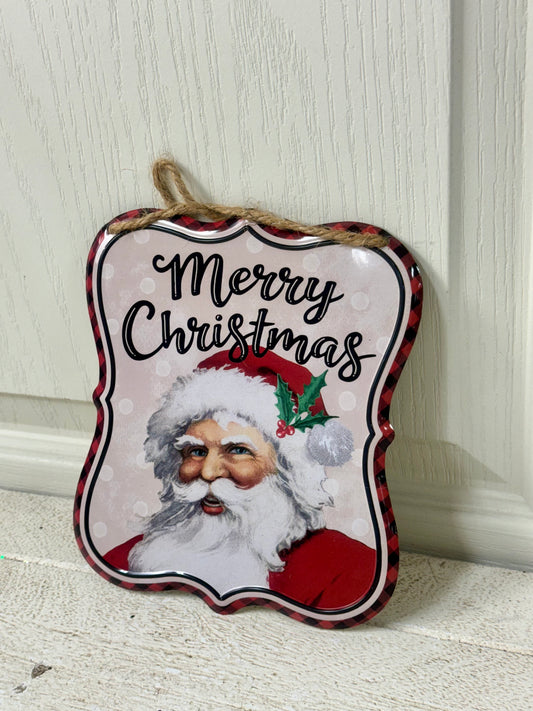 7 Inch Vintage Santa Merry Christmas Metal Sign