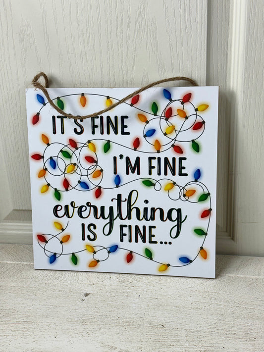 10 Inch Everything Is Fine Christmas Lights Wooden Sign