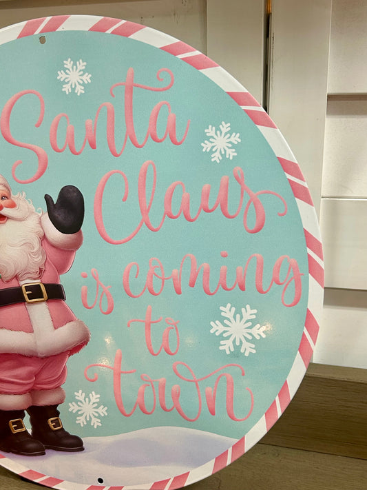 12 Inch Santa Is Coming To Town Metal Sign