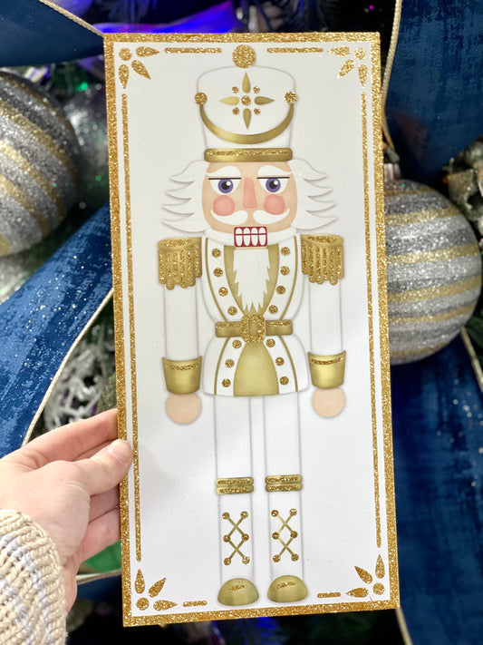 12.5 Inch Gold And White Wooden Nutcracker Sign