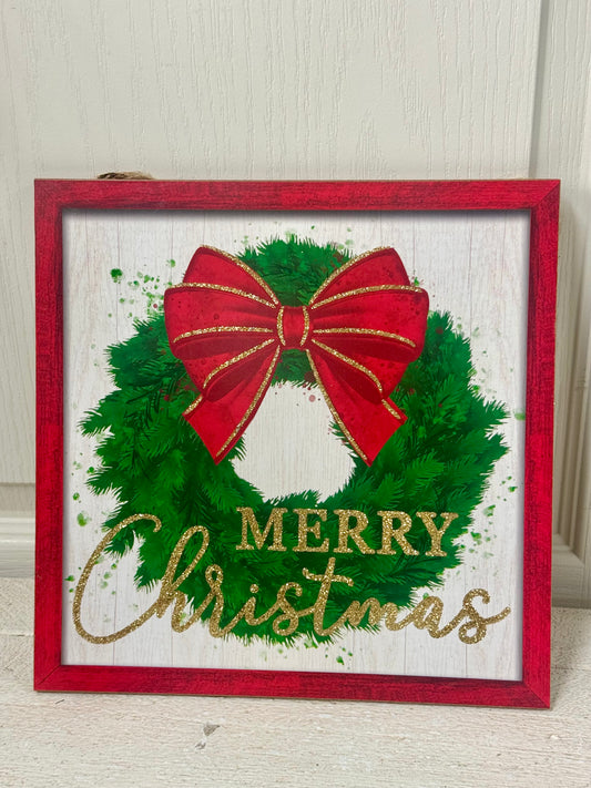 10 Inch Merry Christmas Wreath Sign 10 Inch Square