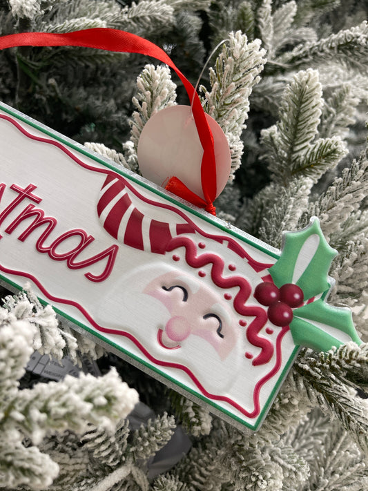 Kringles Merry Christmas Santa Rectangle Ornament With Ribbon Hanger
