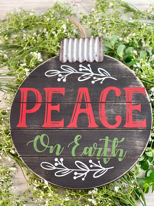12 Inch Wood Bulb Christmas Hanger Baby Or Peace