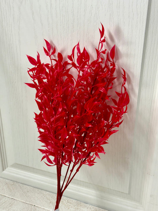 27.5 Inch Red And White Velvet Feather Leaf Spray