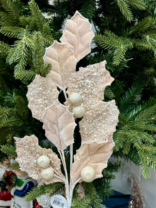 27 Inch Coral Velvet With Pearl Leaf Spray