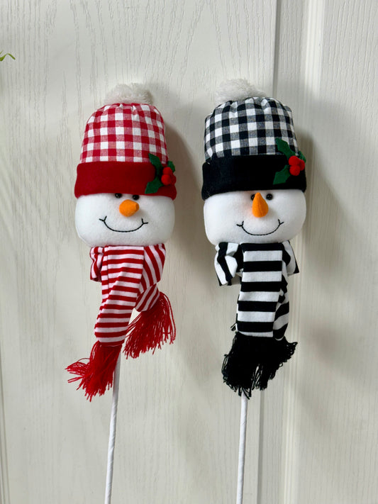 25 Inch Snowman Head Pick Two Assorted Colors Spray