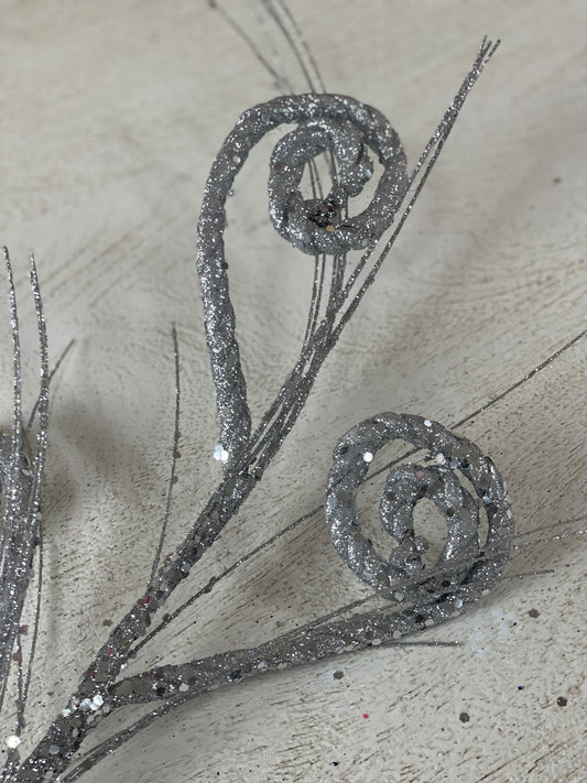 27 Inch Silver Glitter Curly Spray