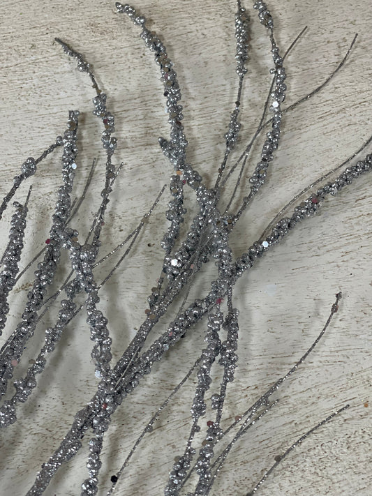 35 Inch Silver Sequin Twig Spray