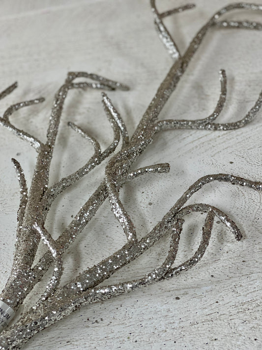 Platinum Glittered Branch Spray 30 Inch