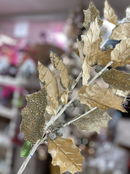 Champagne Glitter Leaf Spray