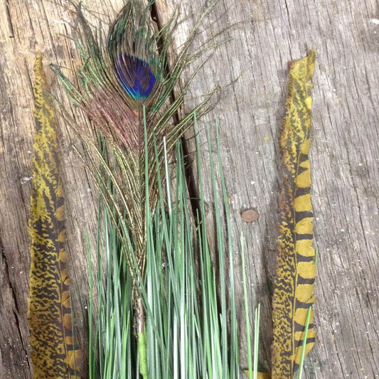 32" Onion Grass With Peacock Feather Spray
