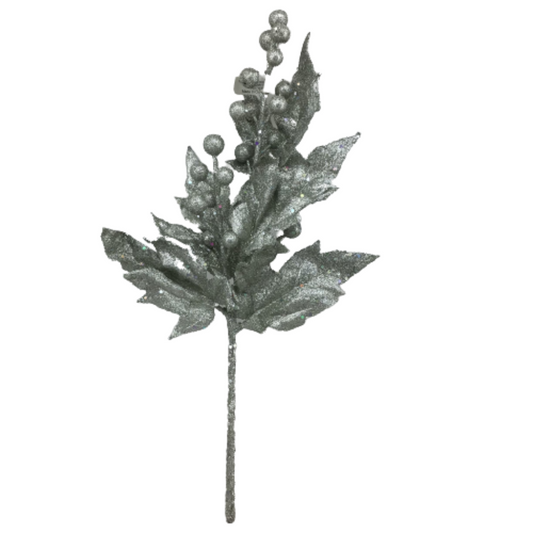Platinum Glitter Maple Leaf & Berry Pick 16 Inch