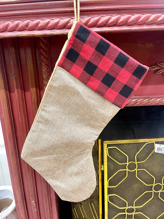 Fabric Christmas Stocking Red And Black Plaid with Faux Fur Top 2 Styles