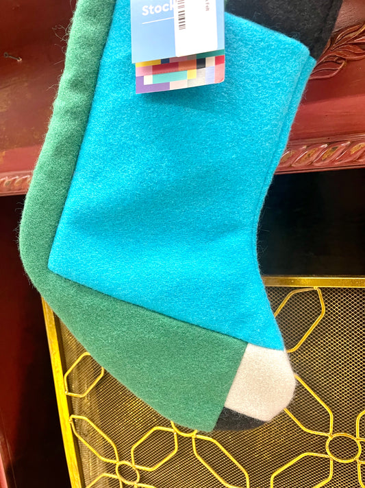 Lego 20 Inch Color Block Felt Stocking Blue Green And Gray