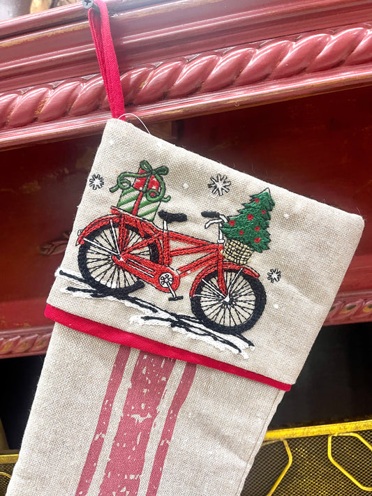 Fabric Christmas Stocking With Truck Or Bicycle Design 2 Assorted Styles