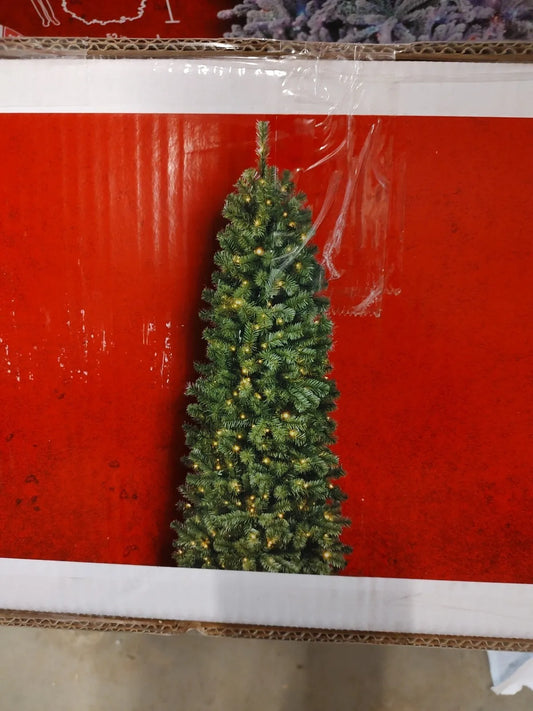 Home Accents Holiday 7.5ft Festive Pine Slim LED Pre Lit Tree Open Box