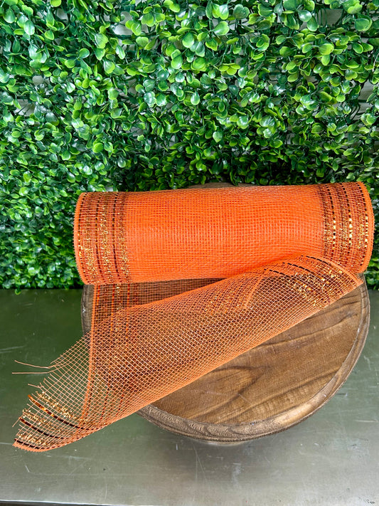 10.25 Inch By 10 Yard Orange Tinsel And Foil Wide Border Mesh