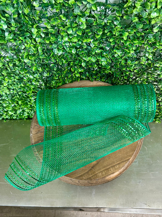 10.25 Inch By 10 Yard Emerald Green Tinsel And Foil Wide Border Mesh