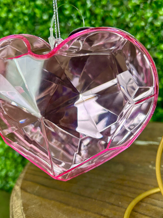 4 Inch Pink Plastic Heart Diamond Ornament