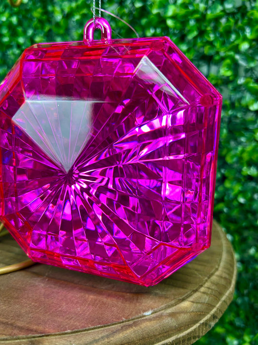 5 Inch Hot Pink Acrylic Square Diamond Ornament
