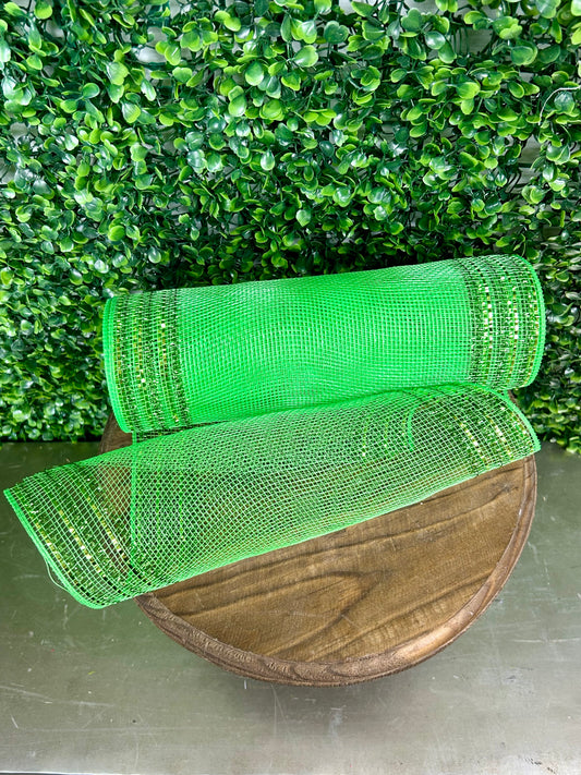 10.25 Inch By 10 Yard Lime Green Tinsel And Foil Wide Border Mesh