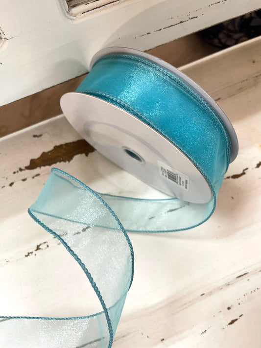 1.5 Inch x 50 YDS Sheer Aqua Ribbon
