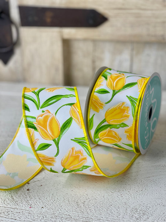 2.5 Inch By 10 Yard Yellow Tulip Ribbon