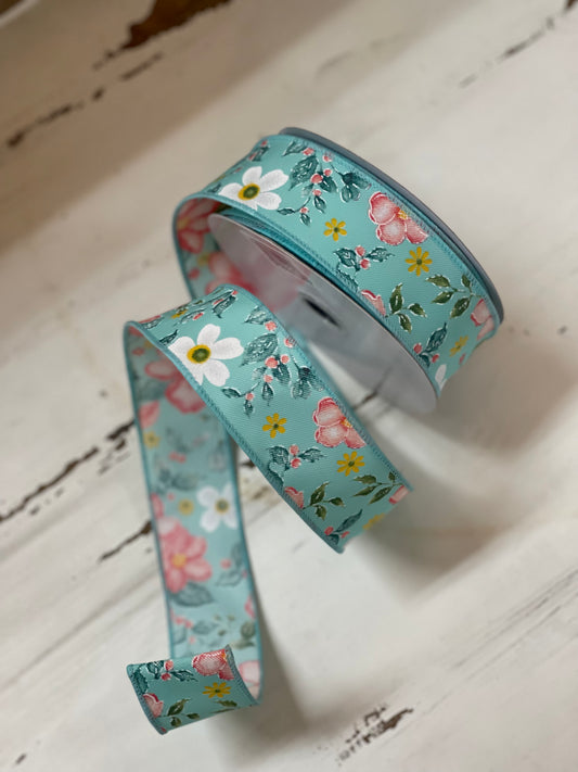 1.5 Inch By 10 Yard Teal Background With Watercolor Print