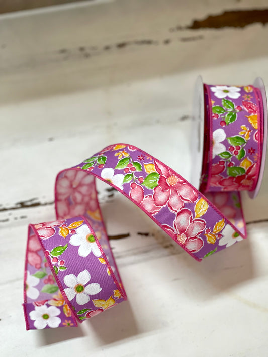 1.5 Inch By 10 Yard Purple Background With Watercolor Flowers Ribbon