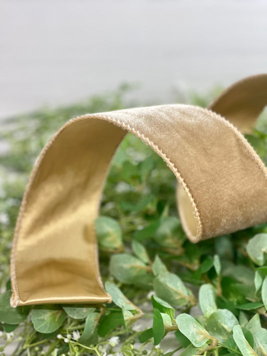 2.5 Inch By 10 Yard Taupe/Champagne Velvet Ribbon With Satin Backing