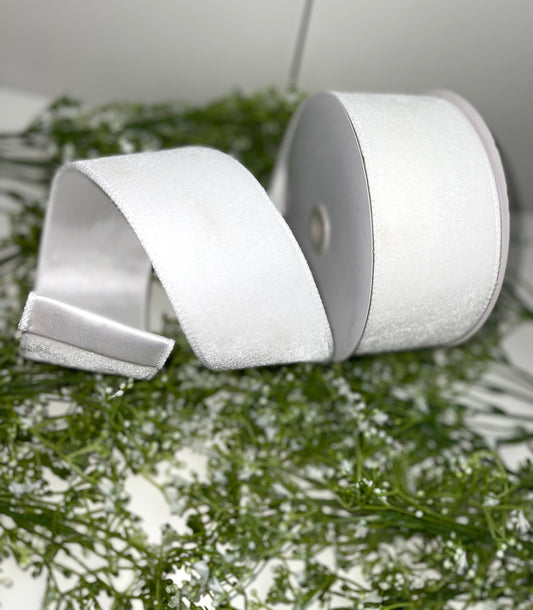 2.5 Inch By 10 Yard White Velvet Ribbon With Satin Backing