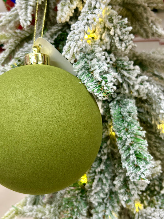 5 Inch Moss Green Smooth Flocked Ball Ornament