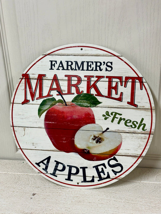 12 Inch Apple Farmers Market Metal Round Sign