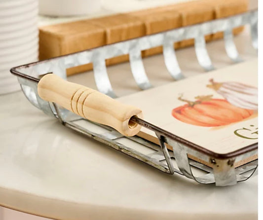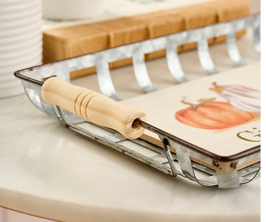 • Home Reflections 13 Inch Galvanized Decorative Harvest Tray Autumn Blessings