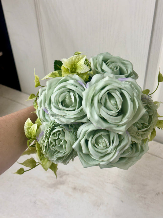 19.25 Inch Sage Green Peony And Rose Mixed Floral Bush