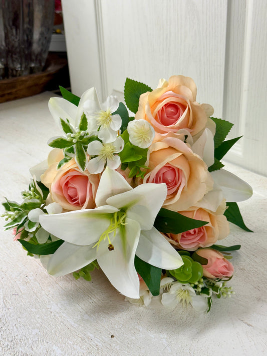 21 Inch Champagne Rose Lily Mixed Floral Bush