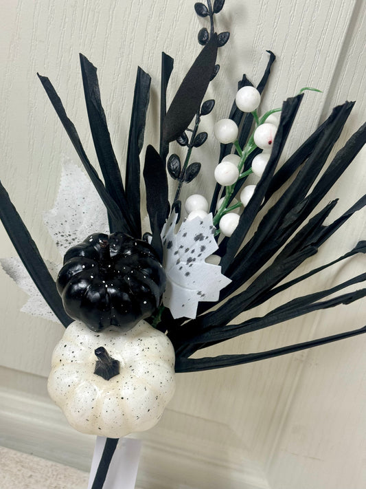 16 Inch Black And White Pumpkin Berry Grass Spray