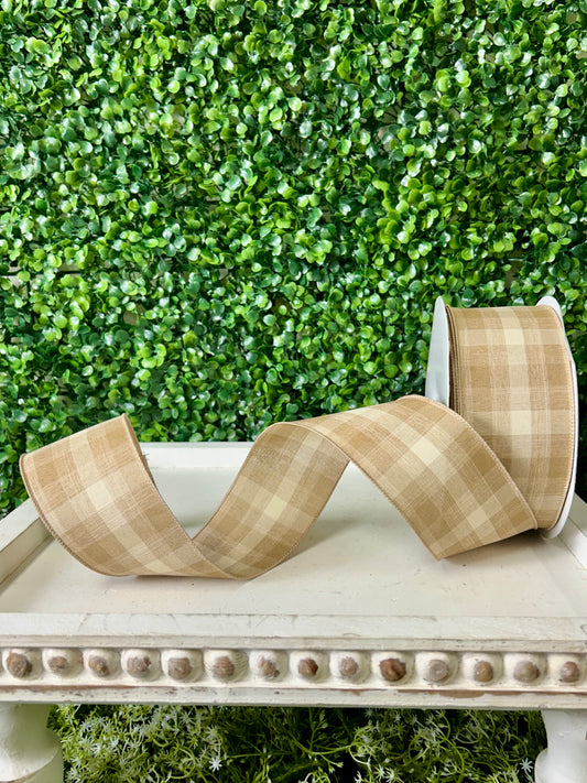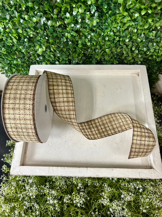 2.5 Inch By 50 Yard Beige And Natural Woven Plaid Ribbon