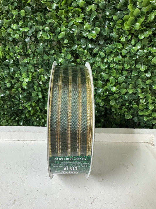 1.5 Inch By 50 Yard Green And Gold Striped Ribbon