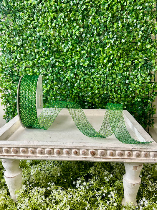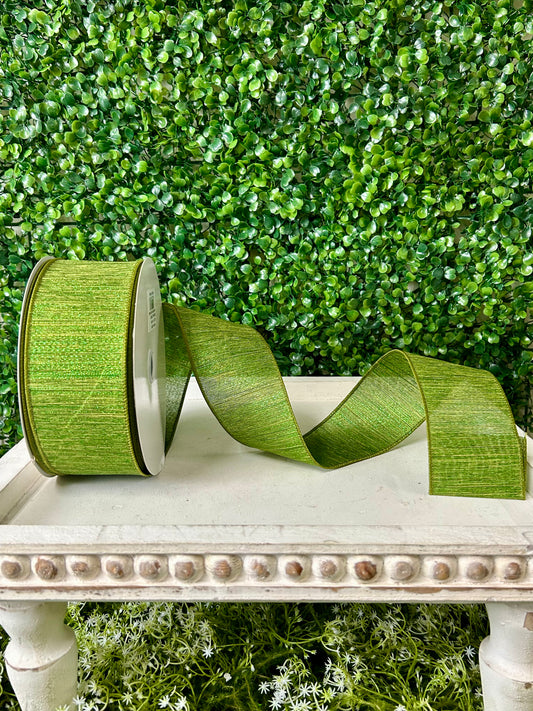 2.5 Inch By 50 Yard Moss And Emerald Green Woven Metallic Lines Ribbon