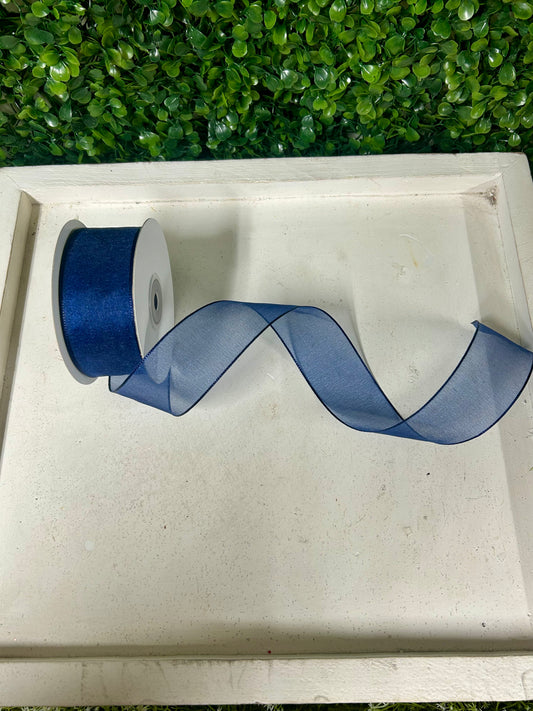 1.5 Inch By 25 Yard Navy Snow Organza Unwired Ribbon