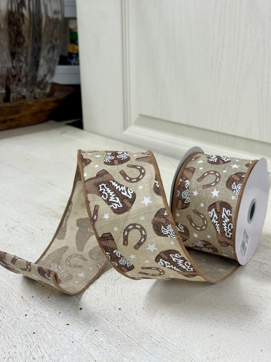 2.5 Inch By 10 Yard Brown Cowboy Boots Ribbon