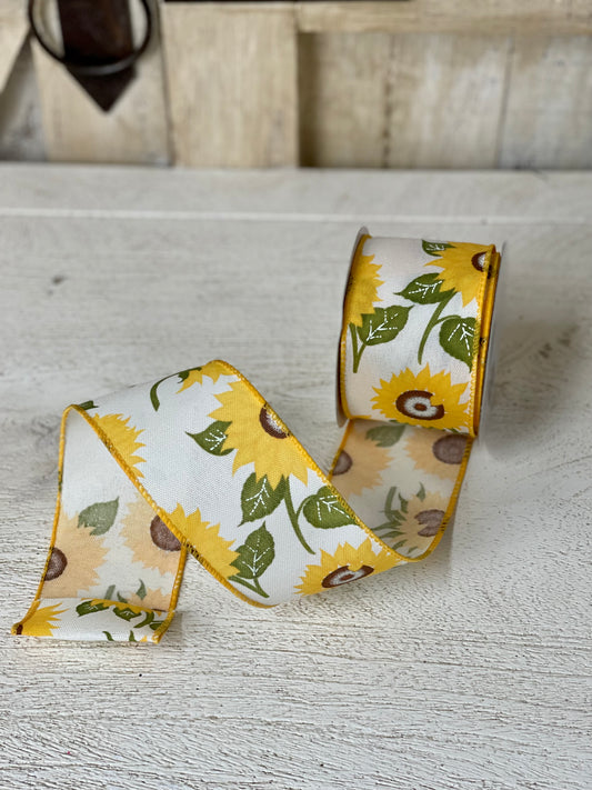 2.5 Inch By 10 Yard Sunflower Printed Ribbon