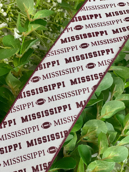 2.5 Inch By 10 Yard Maroon And White Mississippi Football Diagonal Pattern Ribbon