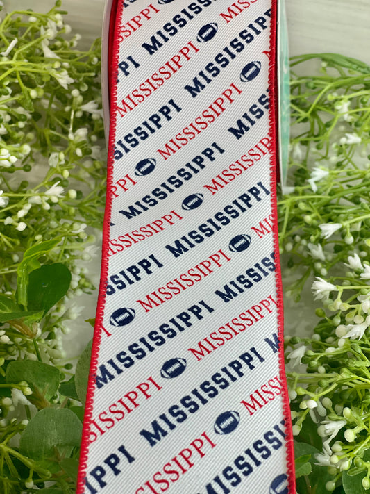 2.5 Inch By 10 Yard Mississippi Football Diagonal Pattern Ribbon