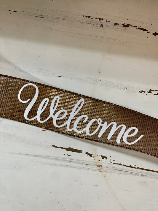 2.5 Inch By 10 Yard Welcome On Brown And Gold Metallic Ribbon