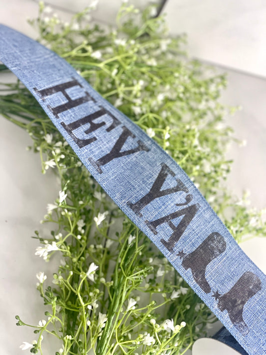 2.5 Inch By 10 Yard Denim Blue Hey Yall With Boots Ribbon